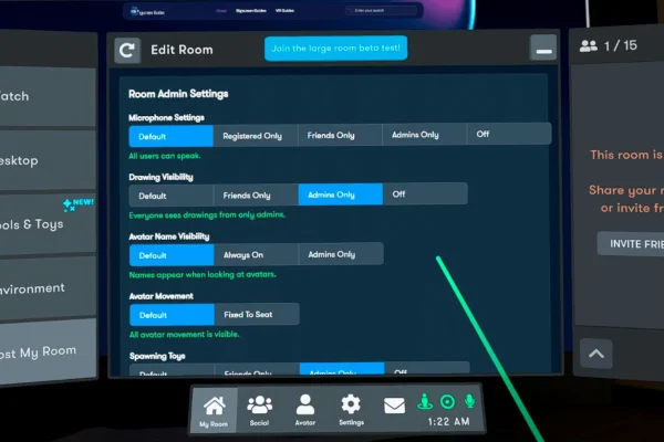 - Room Type: Choose between a variety of settings to open or limit who can join your room (E.g. Invite only, Friends only or open for everyone)
