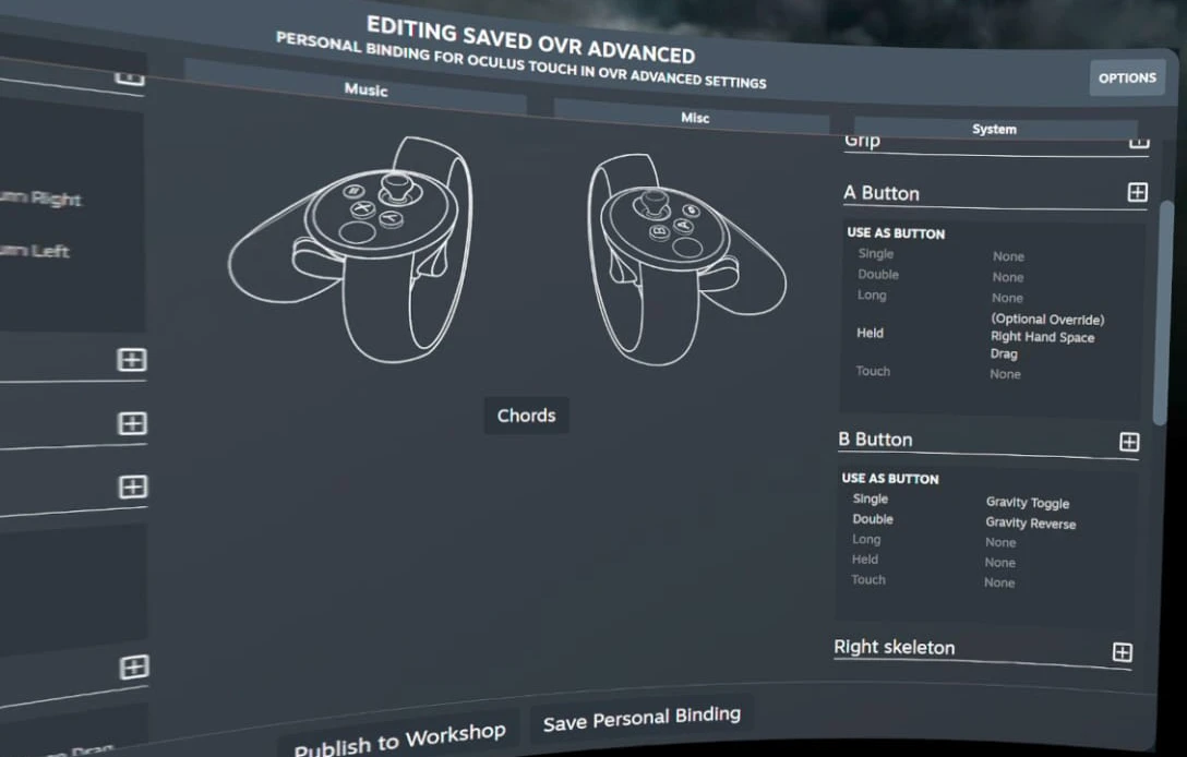 - With OVR running, perform the bound action (e.g., hold grip on selected hand).