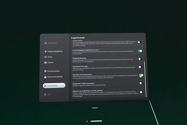 Meta Quest headsets (Quest 2, 3, and Pro) allow users to comfortably watch media or play low-intensity games while laying down by activating a dedicated “Lying Down Mode.” Found under Settings > Experimental > “Use Apps While Lying Down,” this feature enables re-centering the view directly above the user (e.g., on the ceiling).